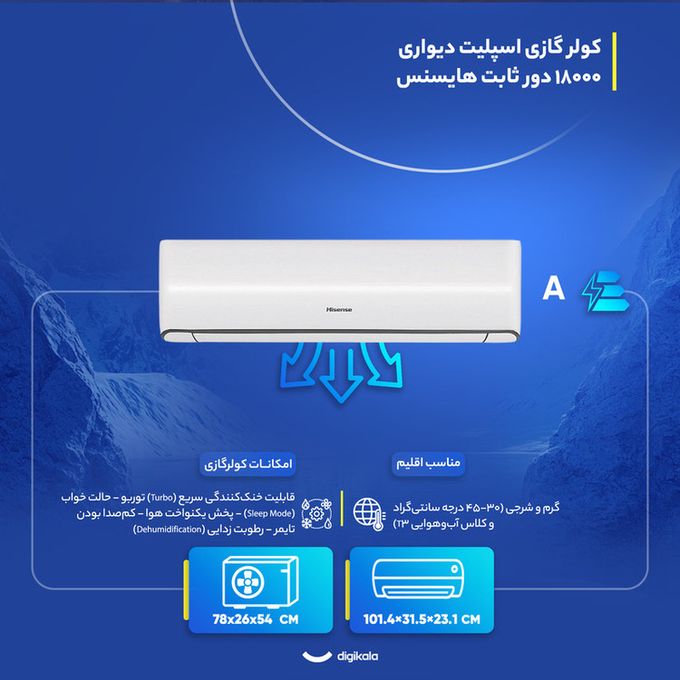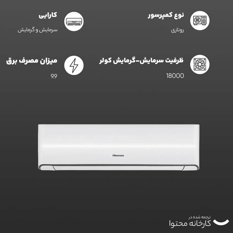 کولر گازی اسپلیت دیواری (Split) 18000 دور ثابت هایسنس مدل HRH-18TQزرین نمای کاسپین