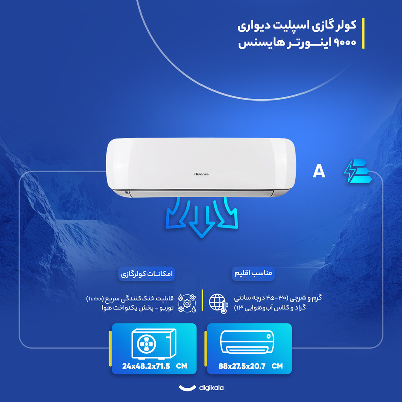 کولر گازی اسپلیت دیواری 9000 اینورتر هایسنس مدل HIH-09TG 9000